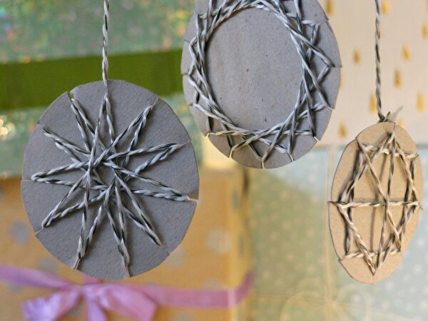 Aus historischen Landkarten, buntem Garn und Butterbrottüten stellst du festlichen Adventsschmuck her.