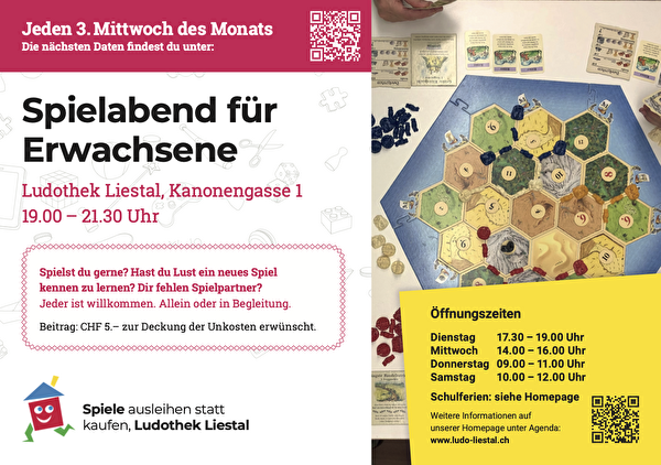 Wir spielen Altbekanntes, probieren Neues aus, und lassen uns gerne dein mitgebrachtes Spiel erklären. Regelmässig treffen wir uns zu einem gemütlichen und unterhaltsamen Spielabend.